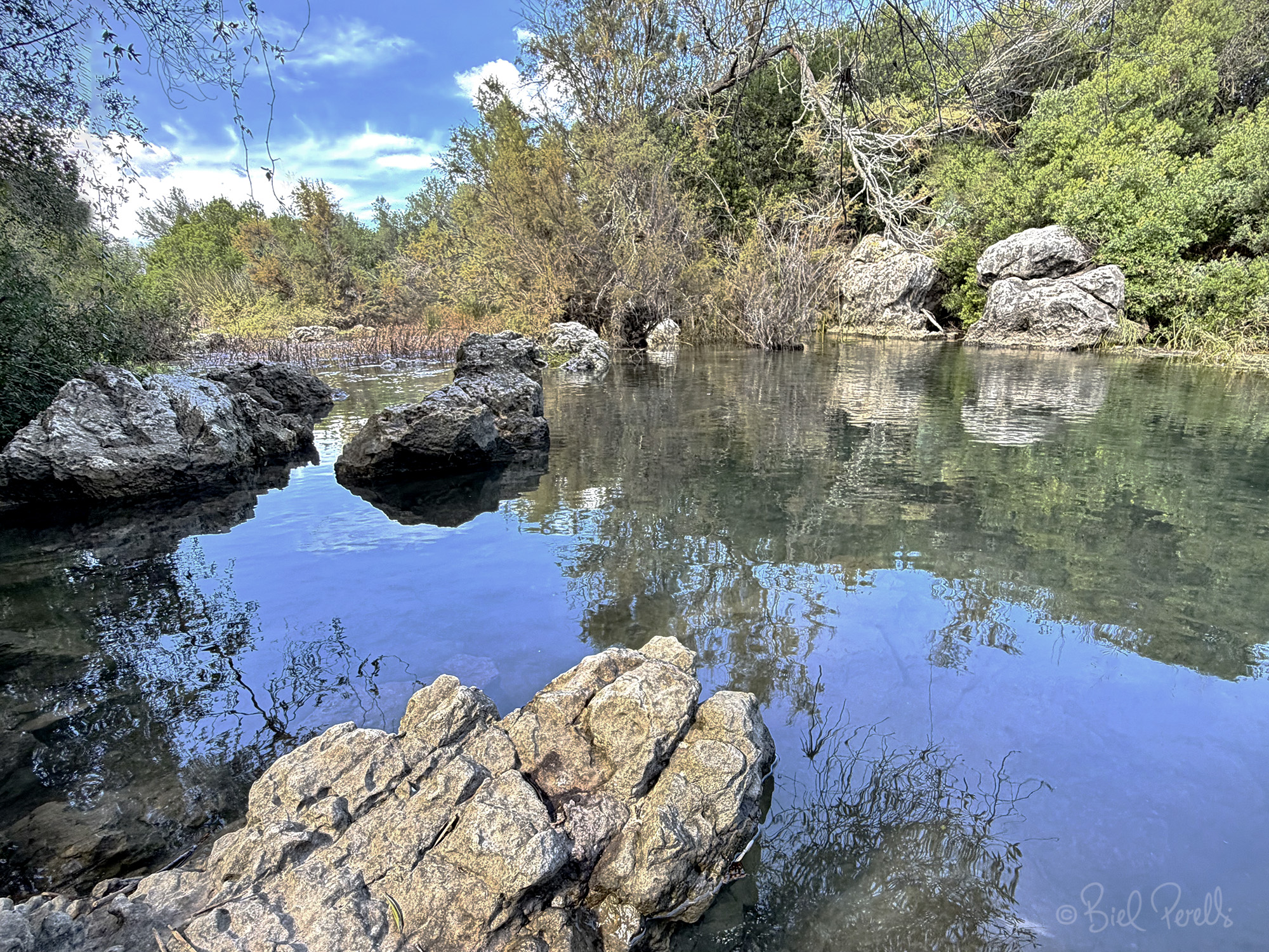 A Mallorca, els torrents són sinònim d’absència: llits secs que només s’activen amb la pluja. El Rec de Pollença trenca aquesta regla. Aquí l’aigua hi és quasi sempre. Fins i tot en ple estiu, quan la resta de torrents de l’illa són només pedres i pols. Però el Rec no és, estrictament, un torrent. És la manifestació visible d’un sistema subterrani complex: un aqüífer càrstic que descarrega de manera contínua a través d’un conjunt de surgències conegudes com els Ulls del Rec, o font salina de l’Almadrava. Aquesta singularitat -un cabal quasi permanent en un context mediterrani- explica per què el Rec ha estat, durant segles, un espai clau des del punt de vista ecològic, econòmic i cultural.