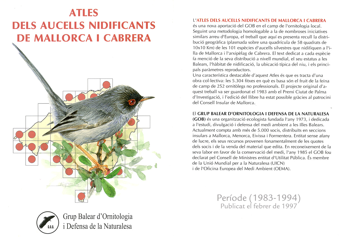 El nou Atles actualitza l'anterior que recollia la informació del període 1982-1993 i que es va publicar l'any 1997, però també augmenta la precisió (quadrícules de 5x5 Km) pel que fa a la cobertura del territori; així s'han localitzat 21 noves espècies nidificants respecte al treball anterior (de les que 4 són exòtiques i/o introduïdes) i s'ha aportat important informació a nivell de paràmetres bioindicadors que permet avaluar l'estat de conservació dels ecosistemes que s'haurà de tenir molt en compte a l'hora de conservar-los. Són 305 pàgines plenes de detallada informació, mapes de distribució, gràfics,... amb una introducció al medi físic (Josep Manchado), a la meteorologia del període (Jose A. Guijarro) i a la vegetació (Joan Rita) de Mallorca, acompanyats de dibuixos de Xavier Canyelles i Cati Artigues amb fotografies de Pere J. Garcias, Toni Muñoz, Biel Perelló, Maties Rebassa i Pere Vicens.